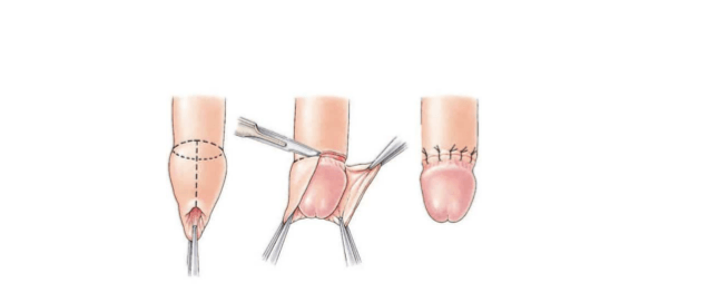 Intervento chirurgico che consiste principalmente nel recidere il frenulo del prepuzio; dopodiché i margini dell'incisione vengono suturati longitudinalmente per rimediare al problema del frenulo breve (si ottiene l'allungamento del frenulo).